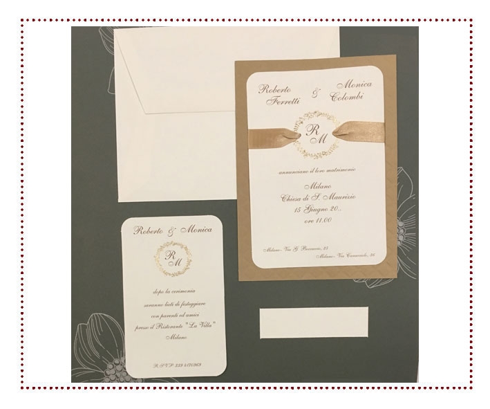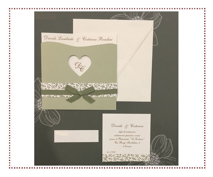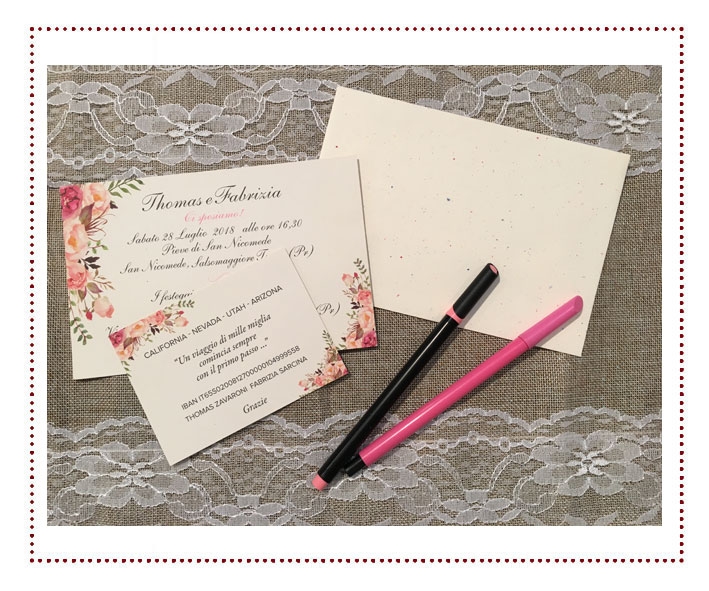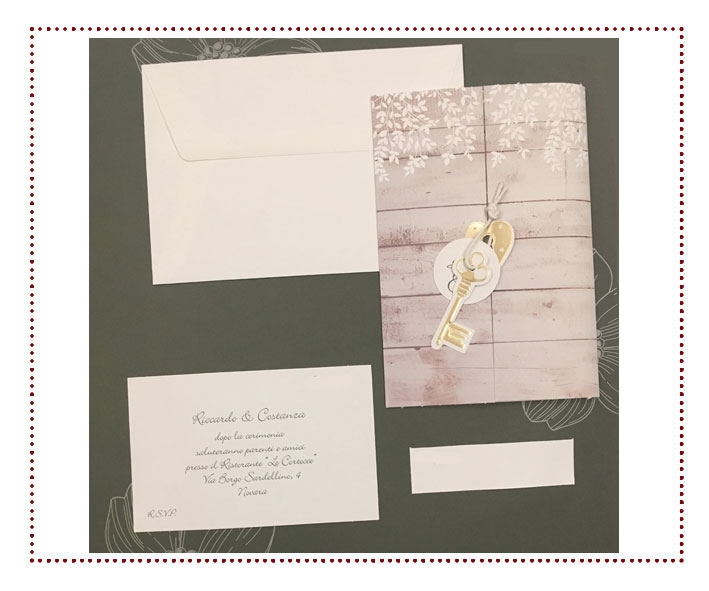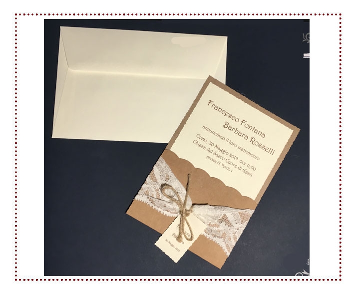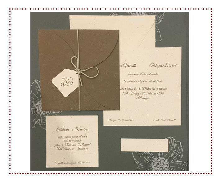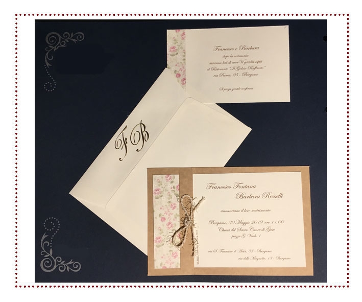 Abbiamo creato per lei una partecipazione shabby, stampata su carta riciclata.