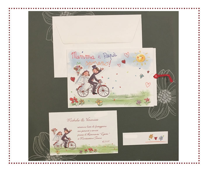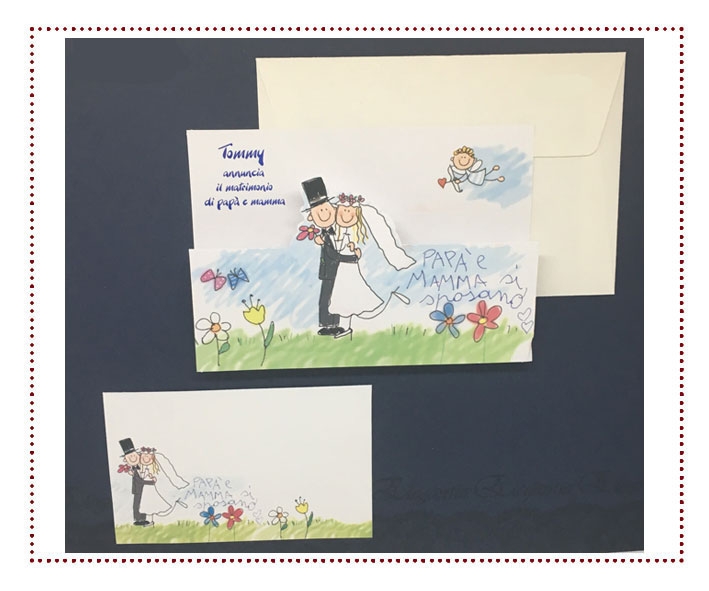Per chi ha già un bimbo e desidera che sia lui/lei ad annunciare il Matrimonio, ecco alcune partecipazioni a tema.