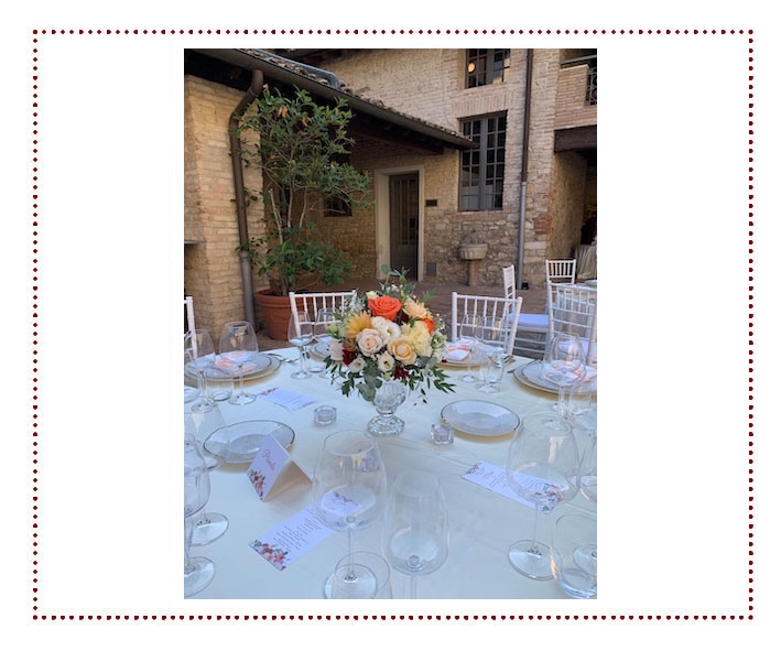 Matrimonio di fine estate celebrato nel giardino del Castello di Felino, tutto giocato sui toni caldi dell'arancio.